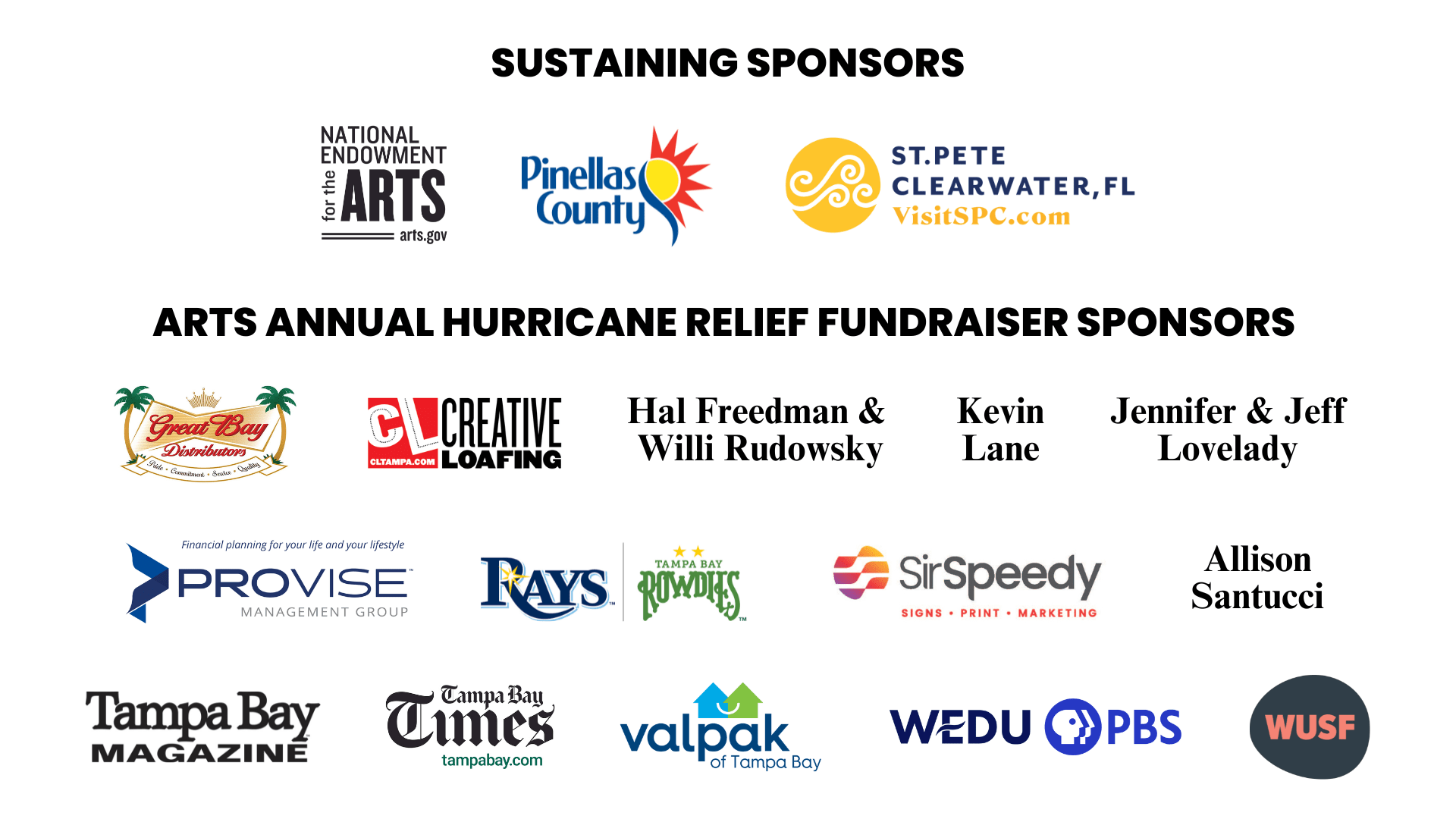 SUPPORT PINELLAS ARTS AND CULTURE! Be part of an unforgettable arts and cultural experience! As an Arts Annual Hurricane Relief Fundraiser sponsor, you will receive marketing and publicity leading up to and during the Arts Annual, both in the gallery and online. Your support helps Creative Pinellas provide funding to the creative community. Thank you for being part of our work! BECOME A SPONSOR TODAY! To become a sponsor, discuss customizing, or if you have any questions, please contact us:727-385-1336Margaret.Murray@cp.svc.alwaysuptech.local…… Read More