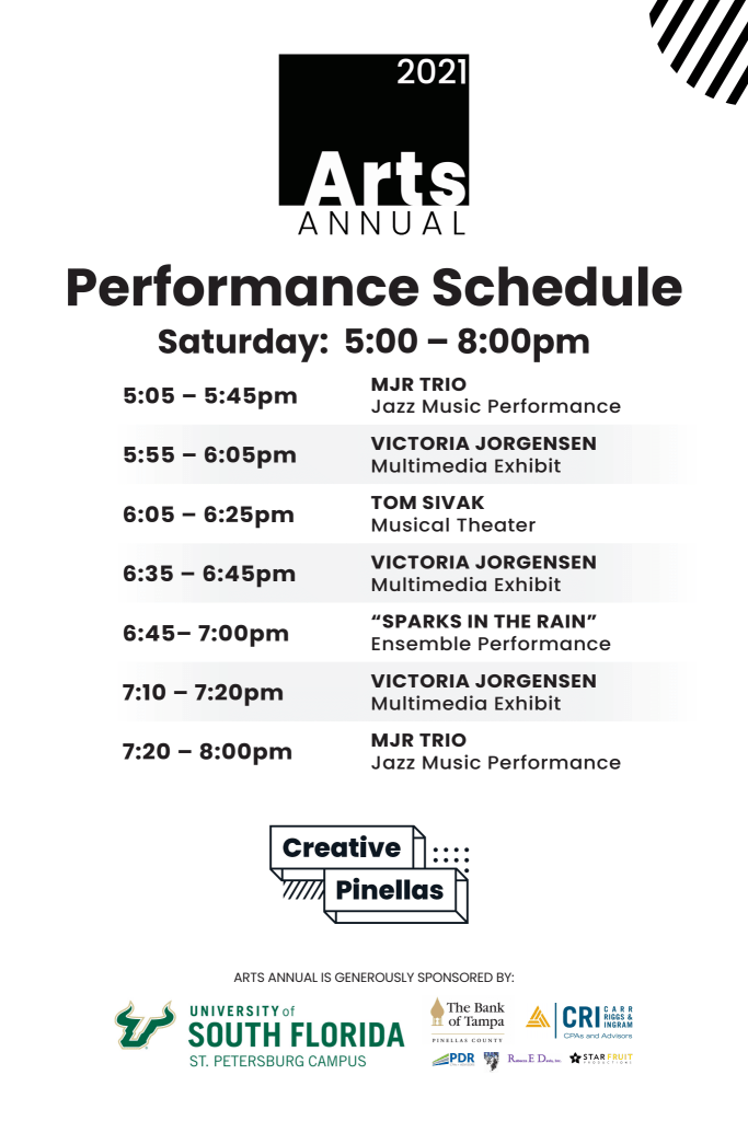 Historically an evening gala, Creative Pinellas is pivoting in 2021 to an outdoor affair in our courtyard with the addition of dance, music, poetry, food trucks, live painters, and the 2021 Arts Annual Exhibition at The Gallery at Creative Pinellas with over 100 art pieces on display and available for sale.