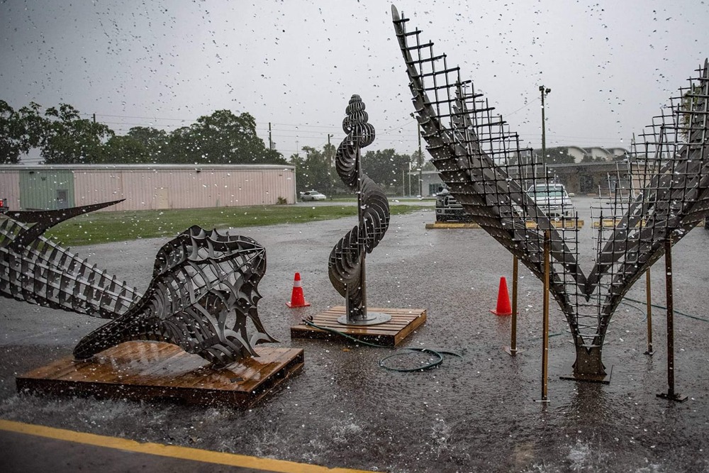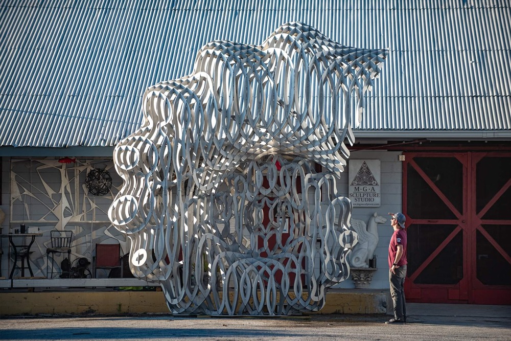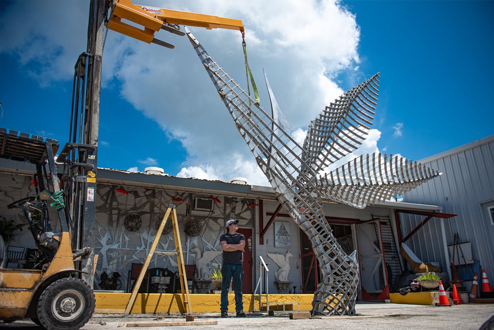 The First Flight Monument was actually completed in December of 2020 by MGA Sculpture Studio, but the grand opening was February 2021 so we’re going to include it. The monument is located at the St Petersburg Pier, and is a replica of the first commercial flight that took place in St Pete on January 1st, 1914. I spent 14 months designing the plane from black and white photos, and the final pieces measures 45′ wide and 26′ long and is comprised of 16,000 lbs of stainless steel.