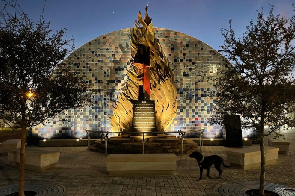 MGA‘s Rise is a 9/11 memorial located on the ArtsXchange campus in St Pete, Florida. Completed in December 2021, the plaza features a 23′ tall phoenix wing made of copper and a 11′ I-beam from the World Trade Center.