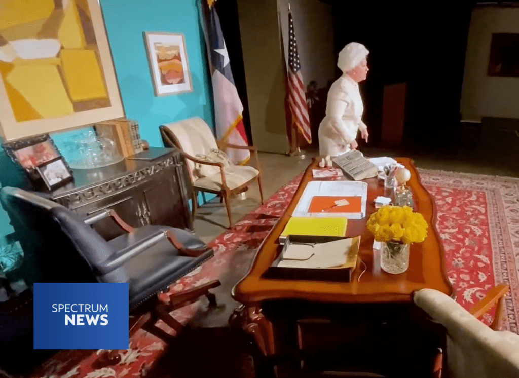Ann started out in the auditorium of a college graduation, but the setting quickly expanded to a convincing re-creation of the office of the governor of Texas (thanks to production stage manager Marcus Wehby), complete with American and Lone Star State flags.