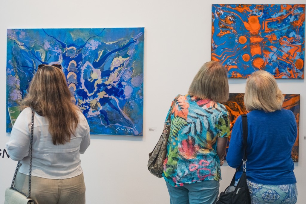 Not surprisingly, there were already sales closed on opening night, underscoring the immediate effect of the exhibition. Its success has not gone unnoticed. In addition to its steep attendance on opening night, the exhibition has also attracted the attention of ABC Action News WFTS Tampa Bay in a televised segment with Sean Daly, who interviewed featured artist Leslie Hiatt, as well as FOX 13 Tampa Bay, which interviewed co-curator Tarin Mohajeri.