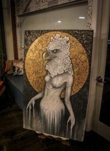 Bekky Beukes’ winged female creatures impart sorrow and strength. Photo by Daniel Veintimilla