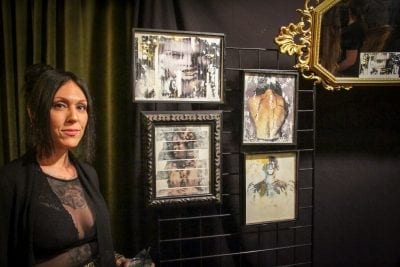 Providing another striking combo of mood and fantastical elements, Deidra Leigh (aka Relic Imagery) brought a compelling mystique to the night. Her encaustic photography and mixed media displayed a provocative exploration of beauty, vanity, intimacy and sexuality.