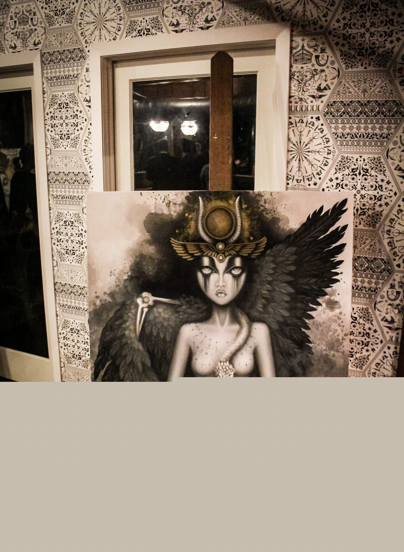 Providing another striking combo of mood and fantastical elements, Deidra Leigh (aka Relic Imagery) brought a compelling mystique to the night. Her encaustic photography and mixed media displayed a provocative exploration of beauty, vanity, intimacy and sexuality.