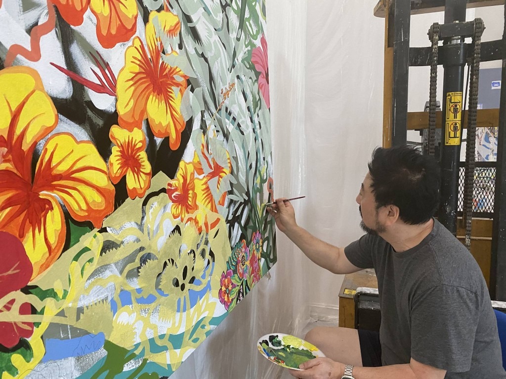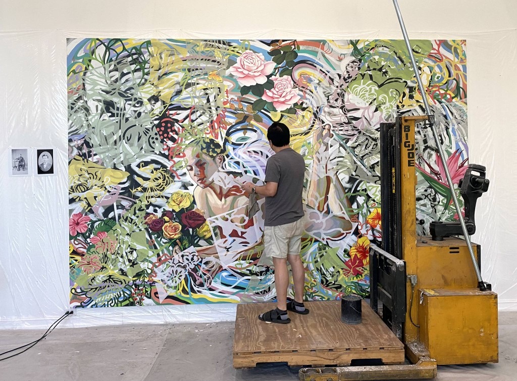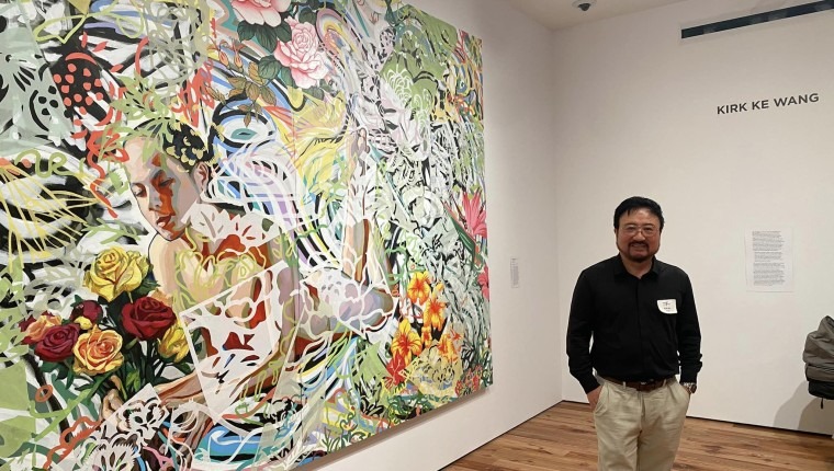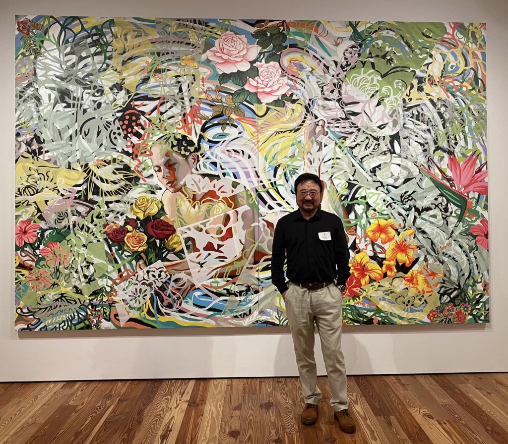 Like the colorful and abstract layers in the painting, the lives of Asian Americans are vibrant, yet sometimes blurry or invisible.