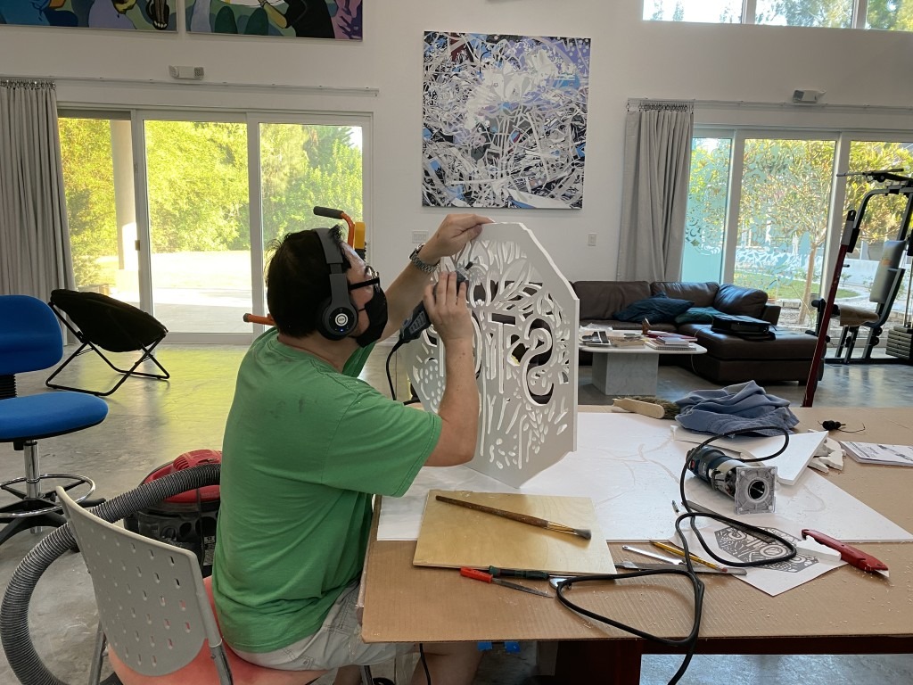 When entering the Sarasota Art Museum’s gallery space, visitors first encounter the GimGong Road street sign – the sculpture I created by following the actual street sign in Oldsmar.