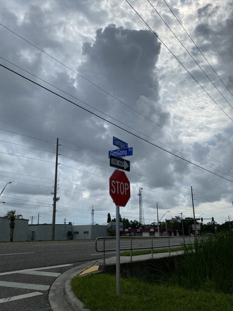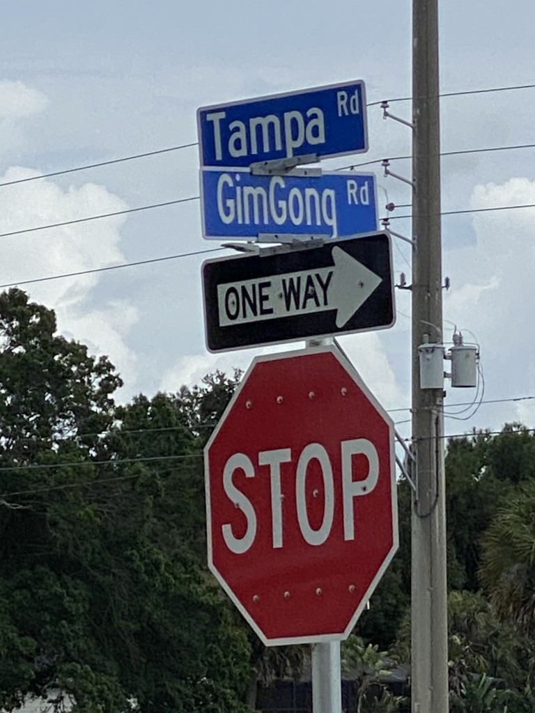 Approaching, I spot an odd-looking street sign on the right. If not for the slow traffic, I would never notice this insipid street. I study the spelling – it doesn’t resemble to any western language or Native American that we’re accustomed to see on street names here in Florida.