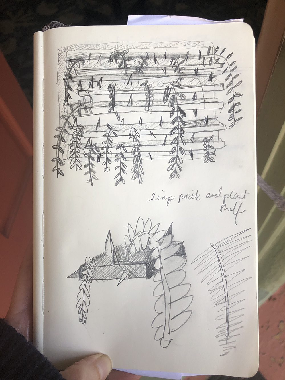 Above are two images of the work in progress ‘Limp Pricks and Plants Shelf I’