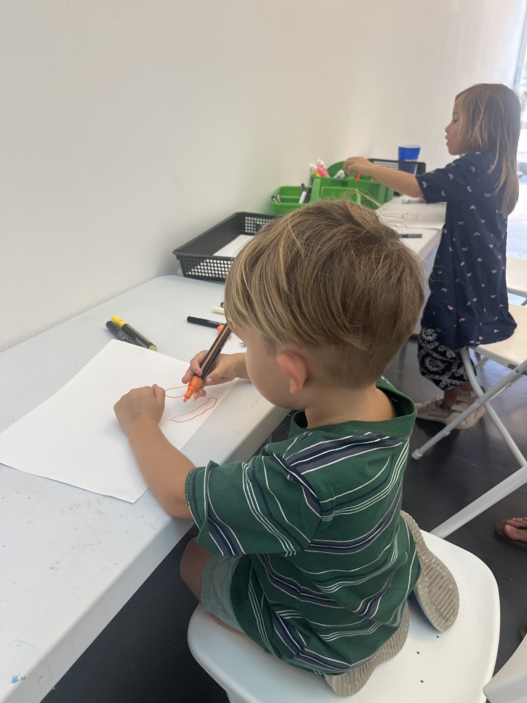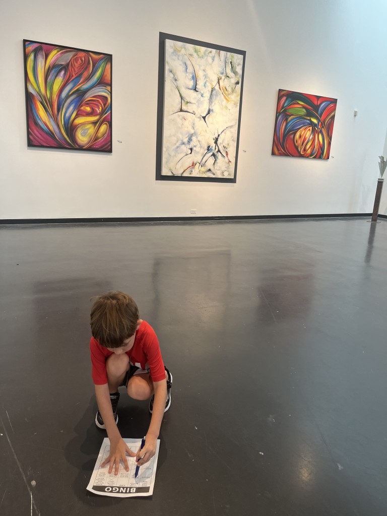 Once we explored the galleries, Thomas and Madeline eagerly sat down to draw in the art space while William and I went on the BINGO scavenger hunt.