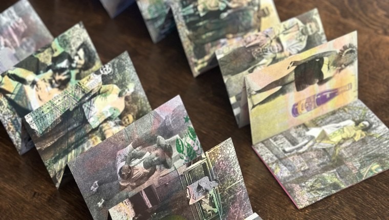 Tangible print allows for a more intimate and attentive engagement than scrolling on screens. Similarly, buying a handmade print or zine is almost like having a conversation with the creator, and less like purchasing a commodity. In this way, tangle print media creates and facilitates community, by connecting to others in a way that, despite increased access to information and connections, technology fails. My work for the Emerging Artists exhibition demonstrates the persisting power and relevance of printed, tactile ephemera, and the assembled multiple, in response to consumerism, mass-production, and the interface between human and machine. Included in the exhibition is time-lapse footage of my process: the countless hours I spent typesetting, proofing, printing, cutting, folding, binding, condensed into speedy clips where I appear almost machine-like.