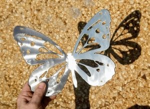 This sculpture reflects the profusion of butterflies that make their epic migration along this route. Utilizing a series of different-sized Monarch silhouettes, the sculpture achieves structural integrity through precise welding of the butterflies.