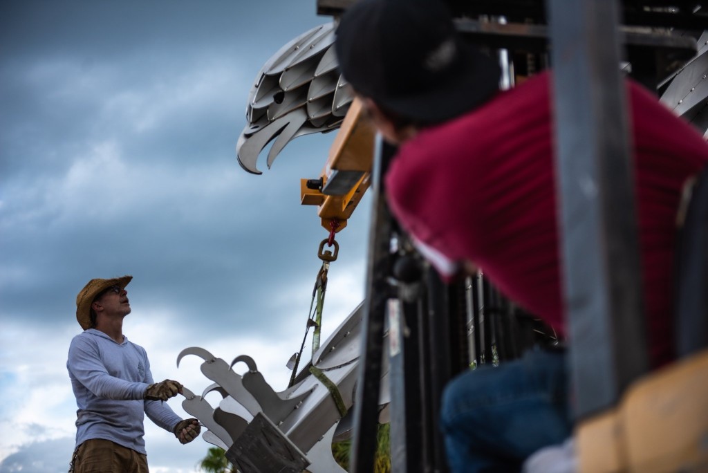 In St. Petersburg FL, Mark Aeling’s work requires little, if any, introduction. Mark’s towering metal sculptures define St. Pete as much as the city’s murals. They demarcate the Sundial shopping center, commemorate the world’s first commercial flight, pay tribute to those who lost their lives in the days surrounding 9-11, and honor the role of law enforcement in our community.