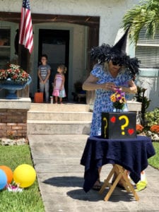 On the personal front, while in costume and safely distanced, I make my grandchildren “Dance” for treats underneath a magic box I painted. When they dance enough, they can open the box! Thrilled at their old toys (recycling people!) and sugared treats (let the parents deal with them the rest of the day!) Then, Off I go to the studio. I have work to do. There is NO, KNOW NOTHING to consider; work to do- costumes, paintings, writing, video, drama, music… till tomorrow.