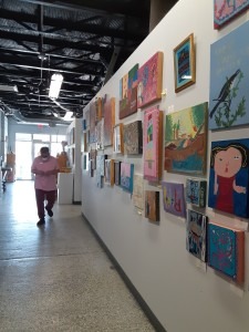 The above pictures starting from left to right are the main gallery, the hallway gallery, and a CC students work who only draws with sharpies. On the right is a CC student who loves to paint high fashion ladies.