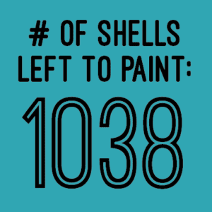 This week, while covered in paint and swimming in a pile of shells, I decided to add new projects to art4theppl that support people here in my local Florida community. I’ve begun researching potential groups in need, including kids and adults, and I’m building my network of people who can connect me with supplies for use in new art projects. I still have a ways to go with shell painting, so I have plenty of time to formulate new ideas. Here is the latest shell countdown: