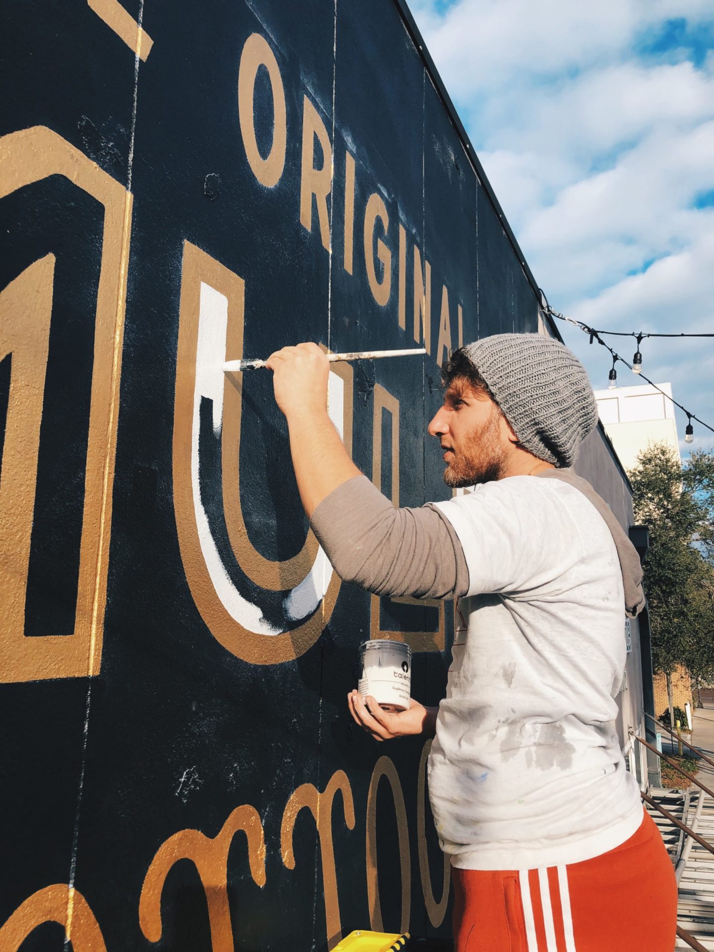 He’s found camaraderie and mentorship with other artists doing similar work, including Leo Gomez and Sun City Signs. “We kind of help each other,” he says, sharing gigs and trading techniques. Hartzell’s confidence in his work has also grown in the three years since he inadvertently launched his sign business. “It’s been a learning process,” he says, “and it took a while to build a client base. It took a while for me to learn how to explain to businesses why my work is worthwhile for them.” In a city that’s so art-centric, well-made signs that catch the eye are important, he explains. “Signs that are legible or creative (are) part of a first impression.” He’s seen firsthand how fun, engaging signage can draw in potential customers. Since he continues to lead mural tours for Florida Craft Art, he “often lose(s) people on the way back. They stop to go into galleries and boutiques because the chalkboard signs attract the eye. (These signs) really do make a difference.”