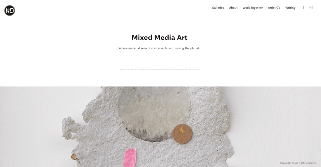 When someone is encouraged to explore more pages of my website, they will find galleries of my projects as well as more detail about my history and vision as an artist and some background about the work. When taken as a whole, my goal is that people leave my website inspired to take more action towards a sustainable lifestyle. As I develop my body of work and continue my practice, I hope to further this mission and find more ways to inspire my audience to this end.