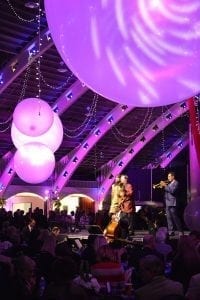 Repurposed weather balloons were illuminated by cycling LEDs and gobos. The oversized balloons lowered the ceiling of the Coliseum, creating a more intimate, less cavernous, space for patrons and entertainers alike. A labor of love for the Studio @620 family.