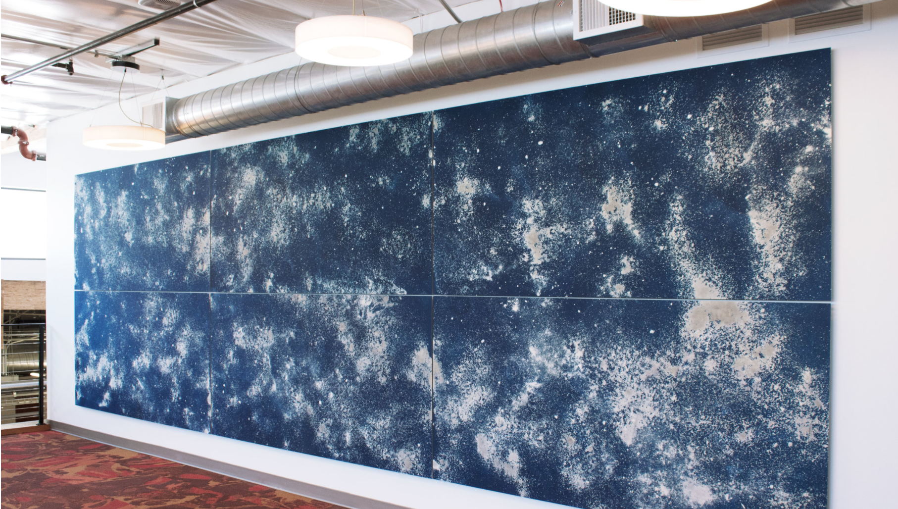 My favorite works by Perrine are her installations. In particular her New Constellations mural project at one of Google’s campuses is absolutely breathtaking, both visually and thematically. I love the deep, moody blue of the cyanotype blueprints with the dusty, airy constellations bursting through the paper… I feel like I’m looking deep into space. Within these stellar works, she creates her own constellations for under-recognized women in the history of STEM; this is just so brilliant I could weep. The mural is accompanied by a booklet that serves as both a map of the constellations as well as a reference guide for them. In it you learn all you need to know about the STEM women whose life and work are recognized (finally) by the constellations.