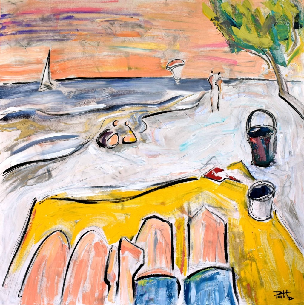 – This painting shows an ordinary day at Honeymoon Island State Park in Dunedin. When we sit together and watch the kids play on the sand, we often get emotional thinking about the miracle of life and the luck we have, to LIVE in such an amazing planet. The sailboat is there to represent the physical presence of the wind and the kite comes back as a reminder and symbol of our lives with all its adventures, excitement, emotions, love, fears, doubts, challenges, conquers and pure joy. –