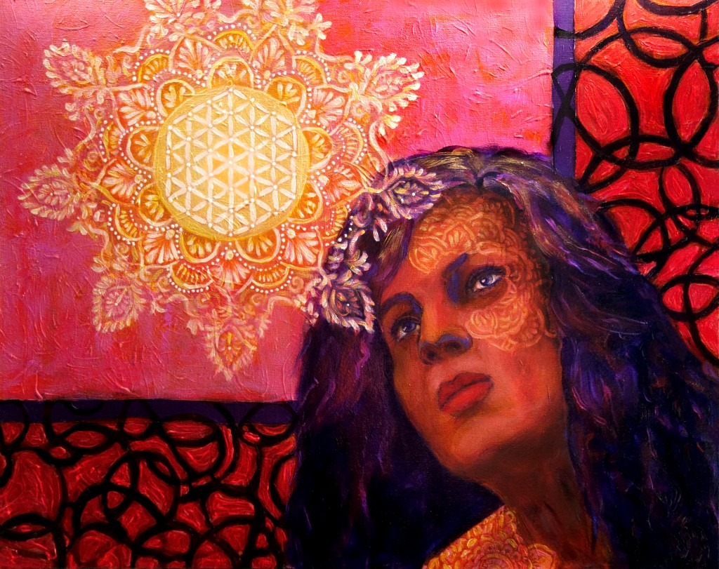 CREATION: The Flower of Life (Cross Cultures), 24″ x 30″, Acrylics, 2022