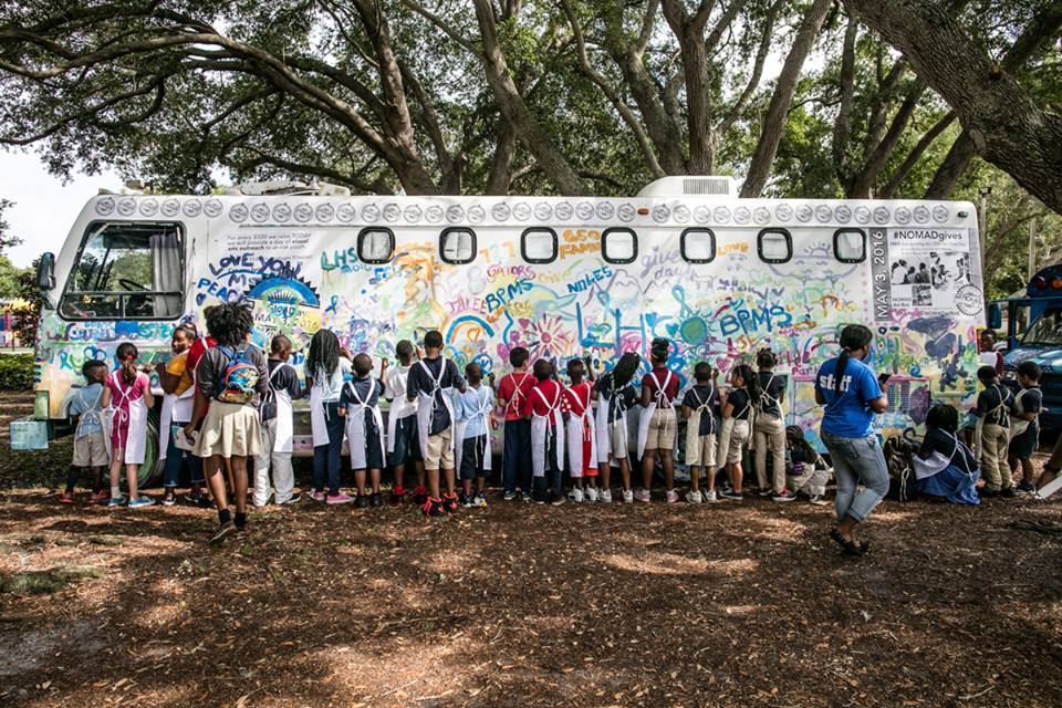 The much-beloved Nomad Art Bus visits art festivals and foster homes, domestic abuse shelters, juvenile detention centers and parks, recreation centers and youth programs in areas of poverty throughout Tampa Bay.