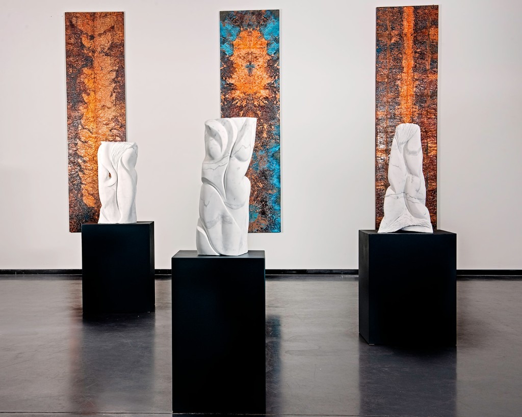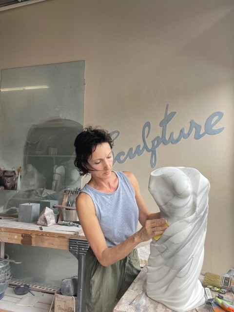Christina Bertsos shares her passion for sculpting in stone and marble with host Barbara St. Clair, and how her work with fabric and hand-crafted couture influences her creations now.