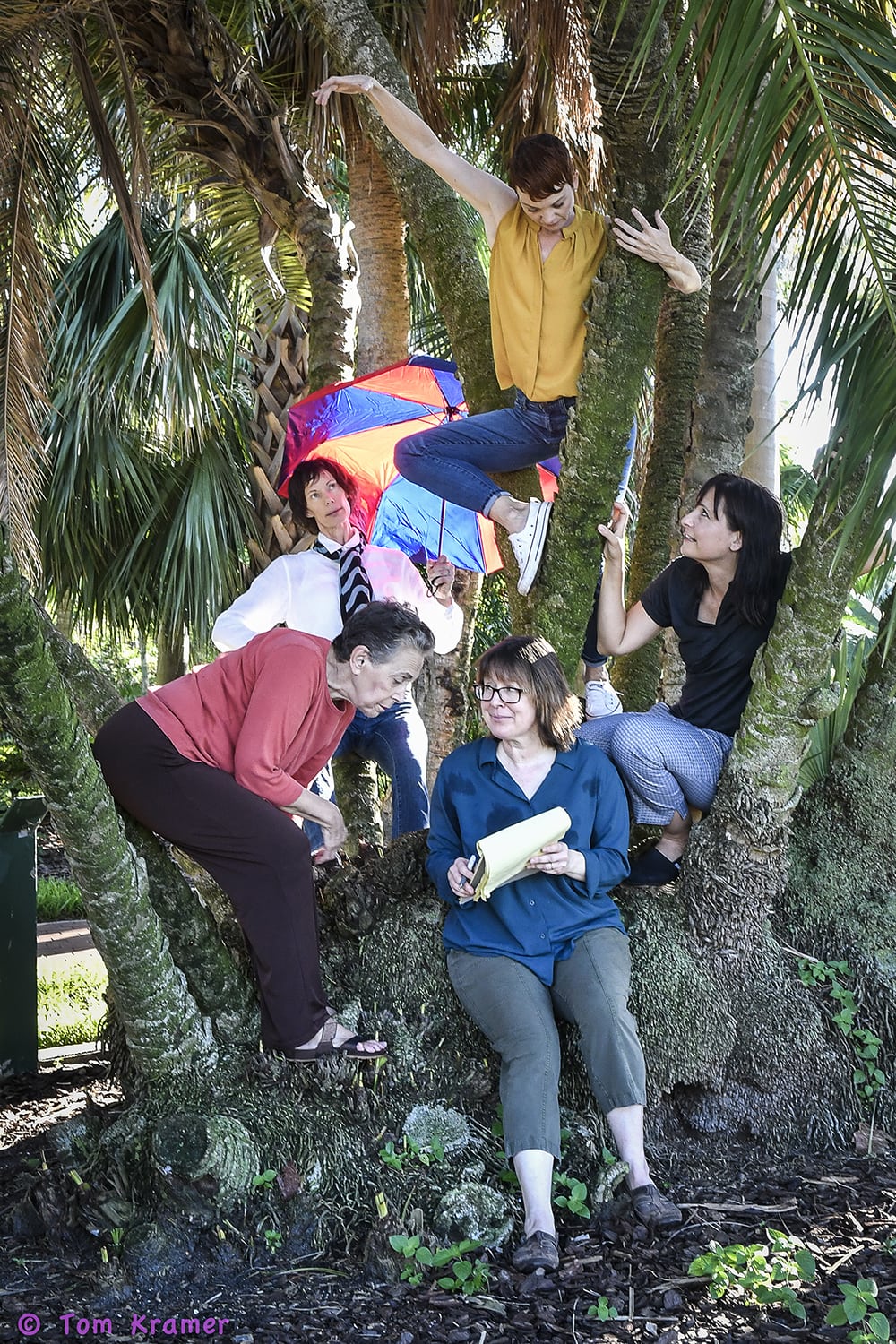 We need a cool photo for The Studio@620 to use on their website for the Madness reading. The amazing dance photographer Tom Kramer volunteers his services, our choreographer Paula Kramer says we need people peeking out of a forest, and Helen Hansen French suggests the lovely Palm Garden in Northshore Park.