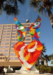 I created this sculpture titled “Rebirth” which includes a large colorful heart and butterfly holding a sphere. This aluminum sculpture is over 10 feet tall and was purchased by the Barrymore Hotel in Downtown Tampa.