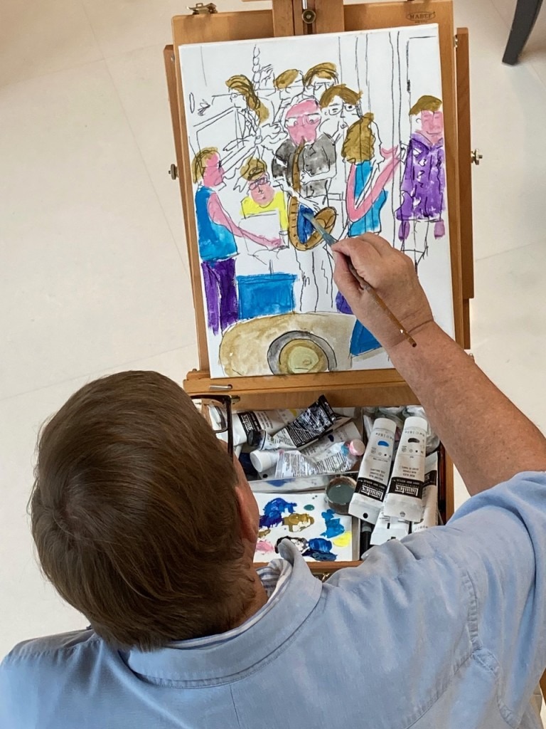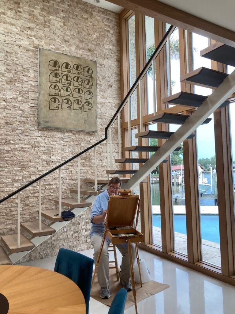 I returned from time to time to check on his progress. A Florida artist, he is one of the few Florida artists whose work hangs in the Florida State Capitol building. By the evening’s end, he had finished the work.