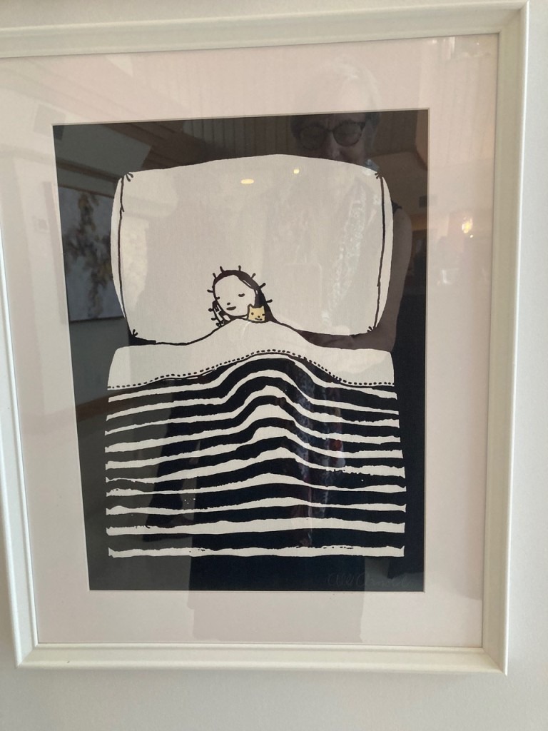 In another part of the house I talked with illustrator Alli Arnold about her whimsical drawings on a mobile display set in the center of the room.