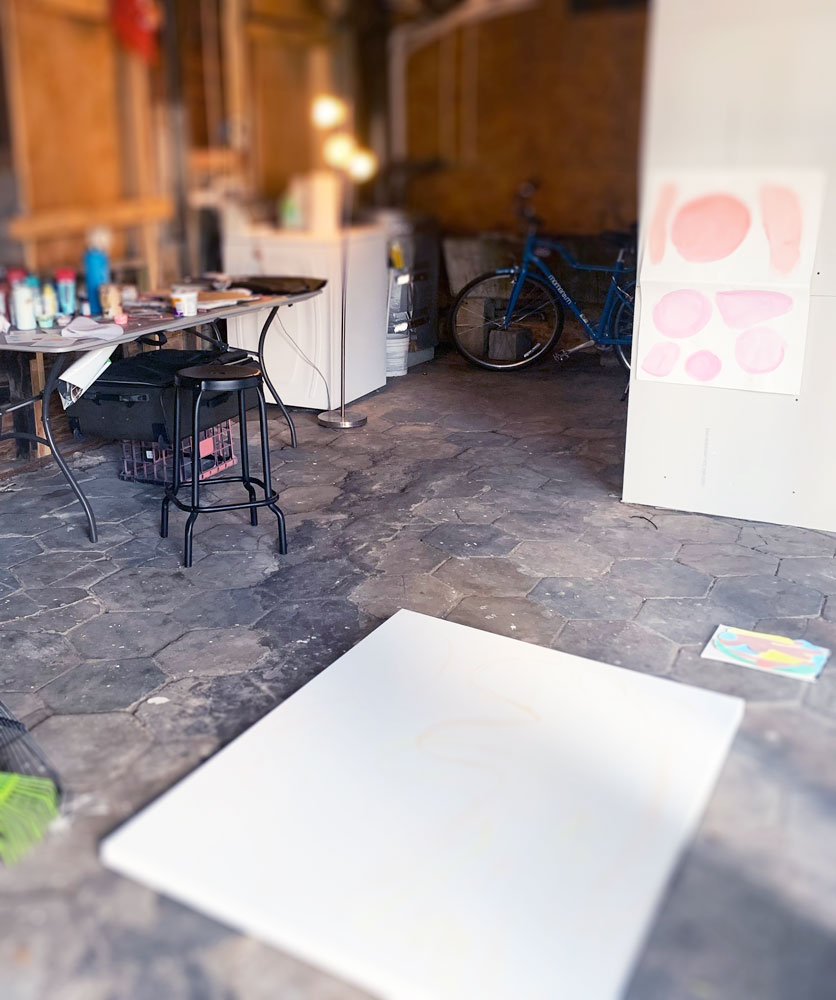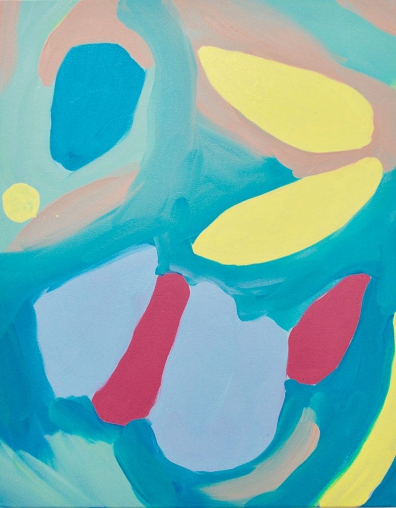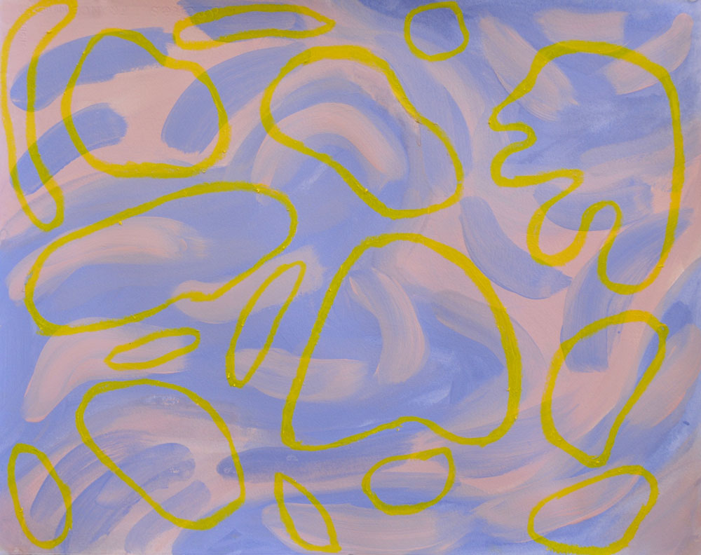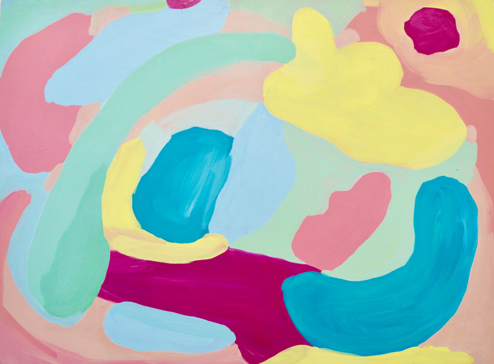 My work is abstract and inspired by the many organic forms found in nature. Rocks, clouds, leaves, and flowers are some of the subjects I turn toward for inspiration. These forms are recognizable in the work, but I aim to generate a new and abstract space that is inviting, playful, and happy. The end result is an expression and translation of sensations I feel when outside experiencing the landscape.
