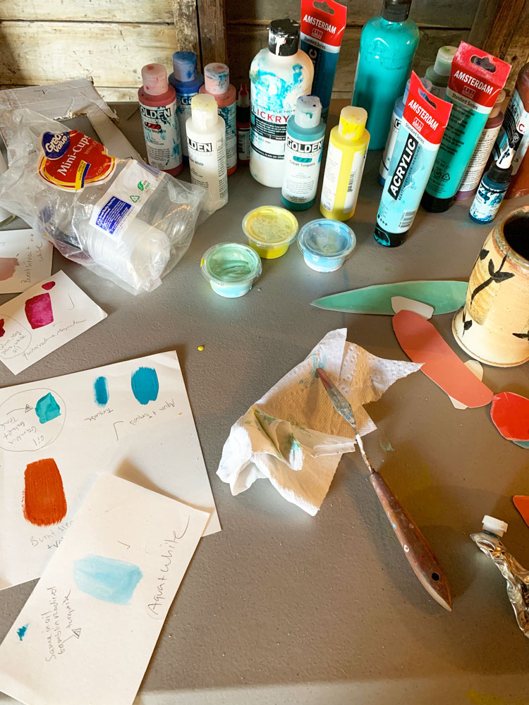 The work begins when I’m in nature. I’ve lived in Maine and the Caribbean and am heavily influenced by the landscape there. My practice comes from Abstract Expressionism, Impressionism, and Luminist American landscape painters. I’ve studied all three movements and am at times reminded of Monet, DeKooning, Matisse, Georgia O’Keeffe, and Turner while painting.