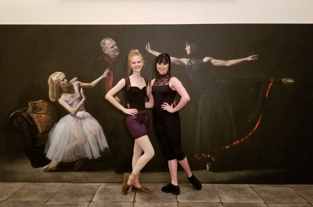 My ballerina models visit the painting-in-progress