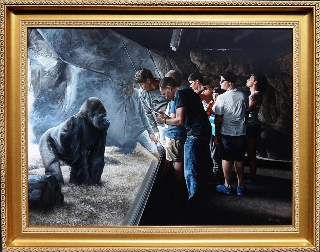 An art collector from Tampa noticed my Primates painting and purchased it when he saw it before a performance in the Performing Arts Center. What were the odds that someone who is local to my home would see one of my works in the town of Findlay, Ohio? I think he may have recognized the scene from Busch Gardens Tampa Bay.