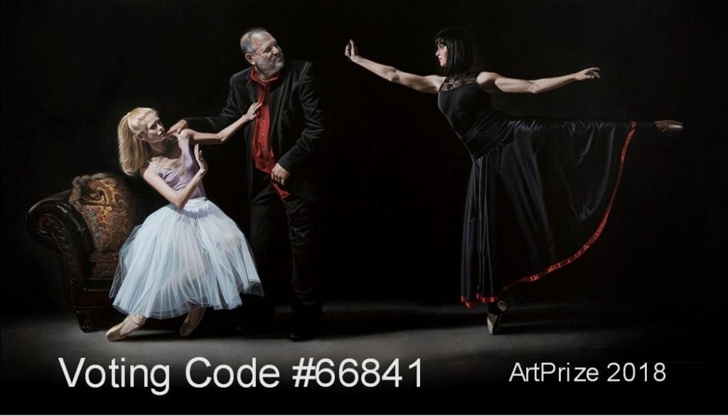 Florida artist Kevin Grass created the large Not #MeToo: No More Casting Couch painting showing two ballerinas resisting Harvey Weinstein. One ballerina cringes from this sexual predator, while the other defends herself using pepper spray. This is my entry No. 66841 in Art Prize 10 in Grand Rapids, Michigan, in 2018.