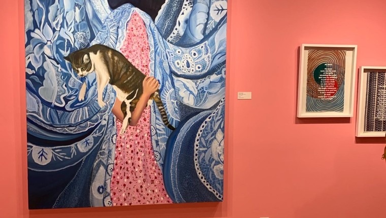 Here’s a picture from my latest show, at the Department of Contemporary Art Tampa on February 9th, the title of the show is At the Risk of Seeming Ridiculous and is an exhibition about love. I was honored that Emiliano, the gallerist/owner of DOCATPA, chose my piece Shayna Punim to be in it.
