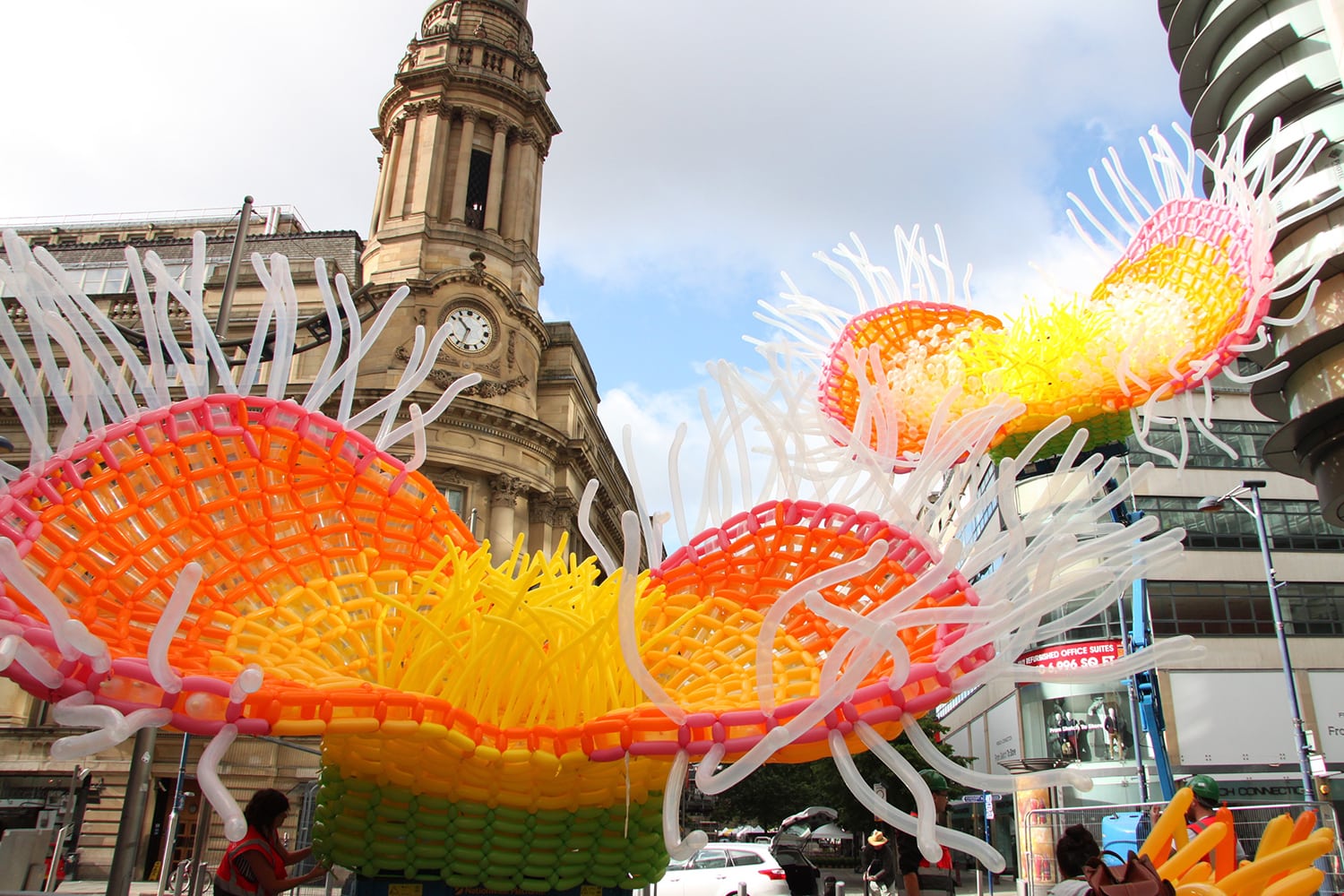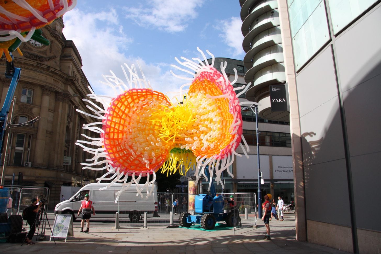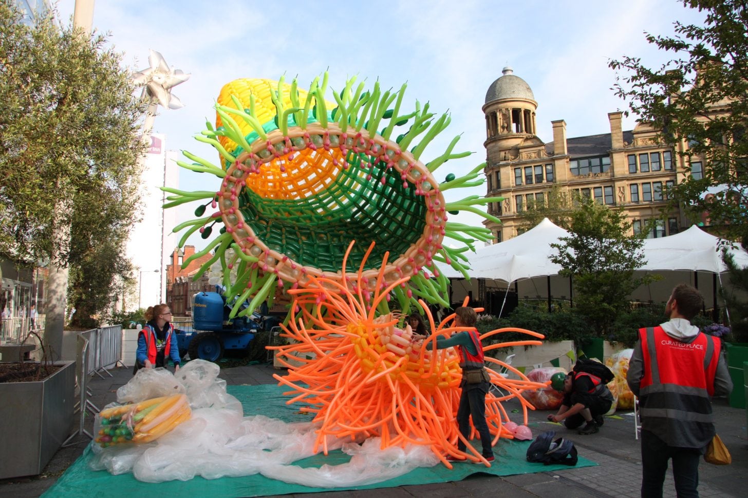 One of my favorite ways of showcasing my sculpture is to put them on articulating boom lifts and move them around in the air. I first had the idea back in 2008 and I proposed it to several curators and directors but didn’t get the green light until the director of Pop-Tech went for it at their conference in Maine back in 2011. See the video attached below. Since then, there have been several. Here are some images from those.