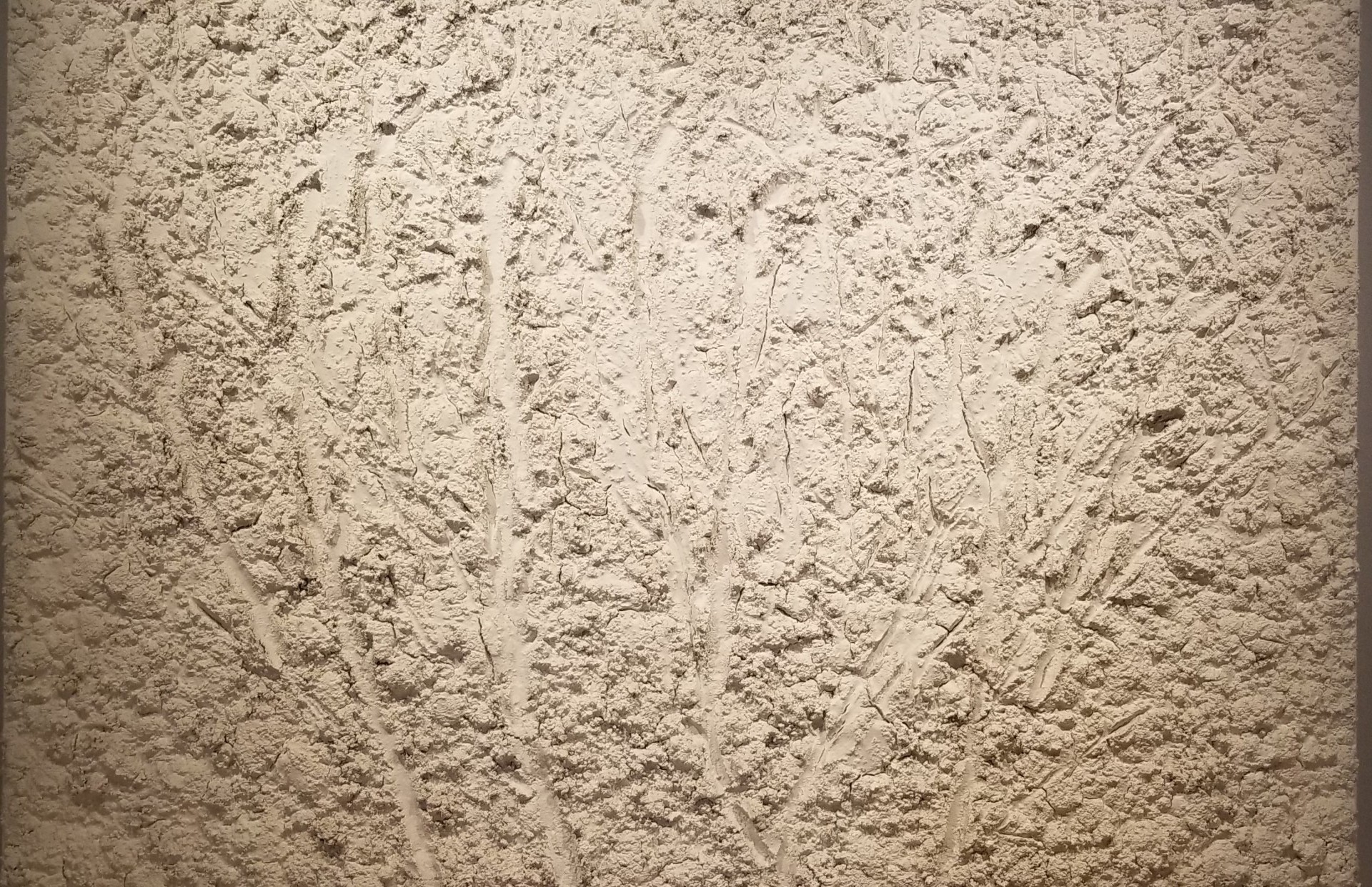 The last section of the exhibit houses perhaps my favorite pieces — a group of paintings titled Vers L’Espagne. These pieces all have rough surfaces that “recall creek beds and footpaths trod by Mexican and Central American immigrants on their way north.” Each one reminds me of scratched up pavement or cracked earth, symbolizing the intense journey many immigrants may face. It brings into perspective the often-arduous journey immigrants go through, whether it be through the endless bureaucratic web they sometimes find themselves entangled in, or the harsh physical journey some families are forced to endure.