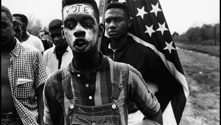 Bruce Davidson – Alabama. Selma. 1965. Led by Martin Luther King Jr., a group of civil rights demonstrators march from Selma to Montgomery to fight for the right to vote.