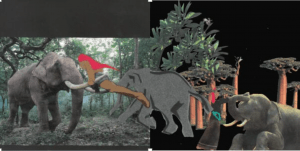 These are two images from my book “My Mommy is My Daddy,” the color version.  The book will be available for purchase soon.  It is cut paper collage edited in Photoshop.
