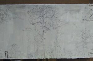 The overstory of pinewoods lends itself to a graphic interpreation – an interplay of positive-negative shapes, linear patterns against sky. The understory is far more dense visually, having a wider range of tonalities, overlapping shadows, overlapping angles and arcs created in the density of plant life.