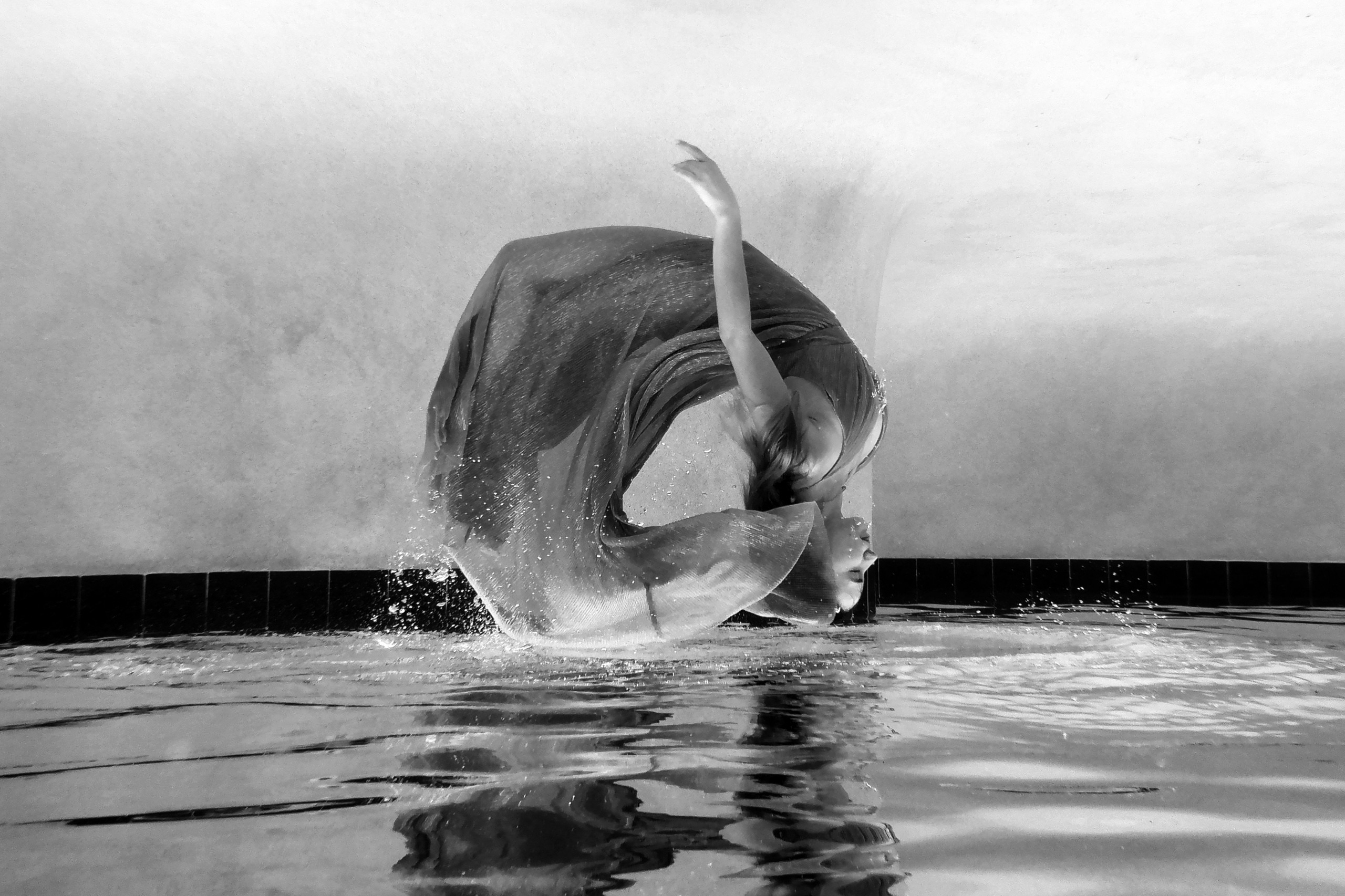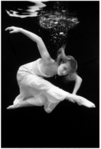 One of my favorite photographs in the exhibition is an underwater image by Ricardo Romero. It is dreamlike and tender. One can only guess what the difficulties shooting beneath the surface must be. There’s also an above water image from what I assume is the same series titled Surreal. The name is apt. It features a woman floating above the surface of a reflective pool. Clearly she is in movement, flipping through the air, yet remains eerily calm and serene. Ricardo was born in South America and is relatively new to dance photography, having focused prior on travel and architecture. He is now the editorial photographer at the Brandon Ballet.