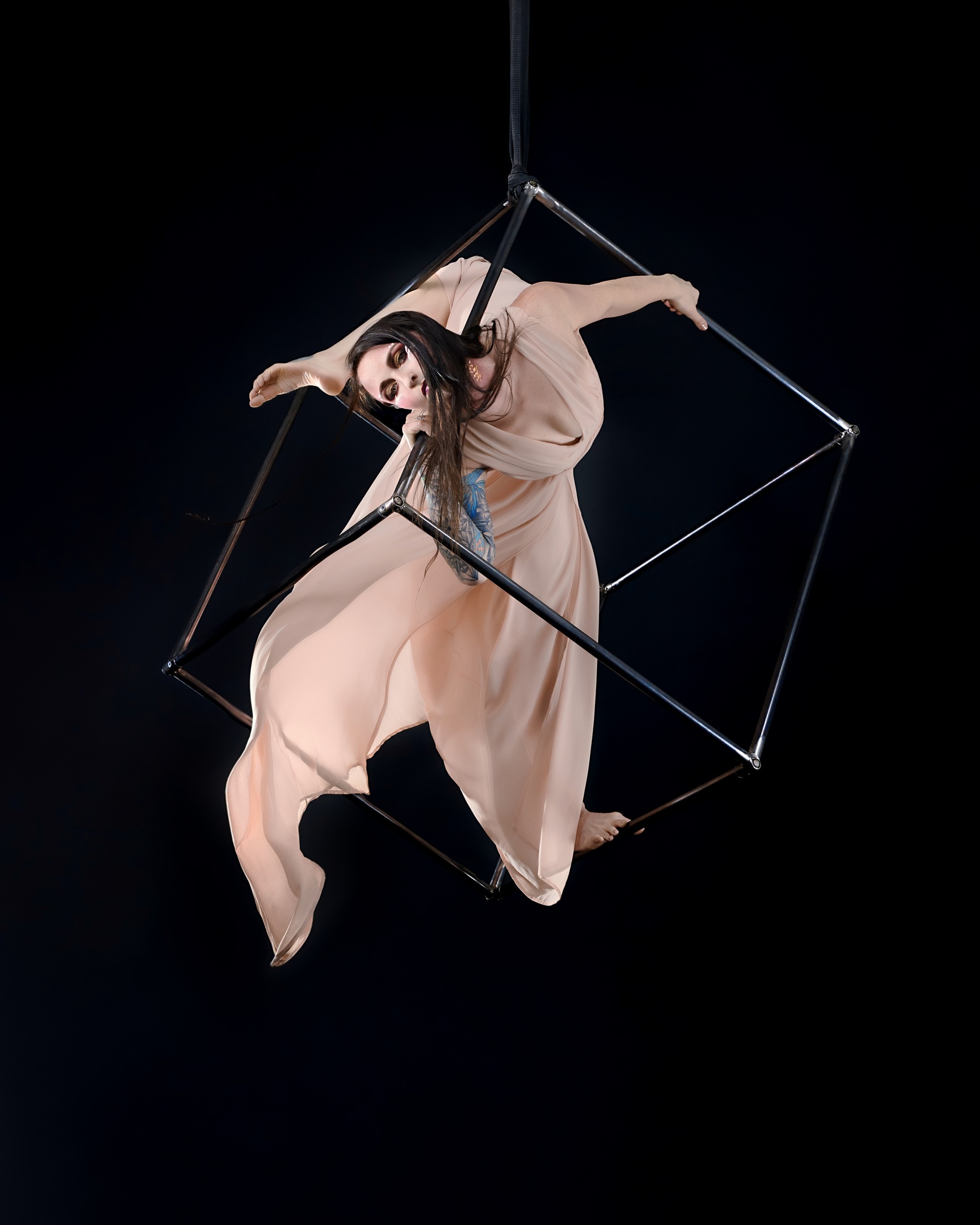 Another standout are the works by Angel Marie Tisdale. Her photographs display a unique combination of strength and beauty. The initial response being, “Isn’t that gorgeous?” and then, “Whoa, wait a minute, how’d they do that?” Tisdale runs her own studio At Dance Art and is the co-founder of Dance Accepts Everyone, a world-wide dance positive group.