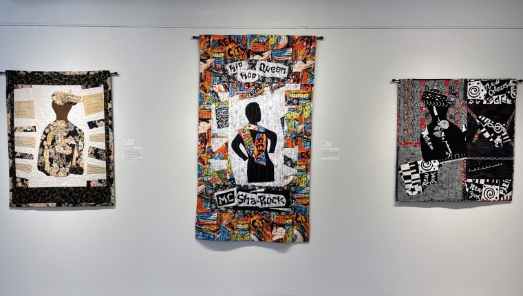 The art work is grounded in traditional forms of quilt-making but presented through a contemporary lens with color, pattern and content.