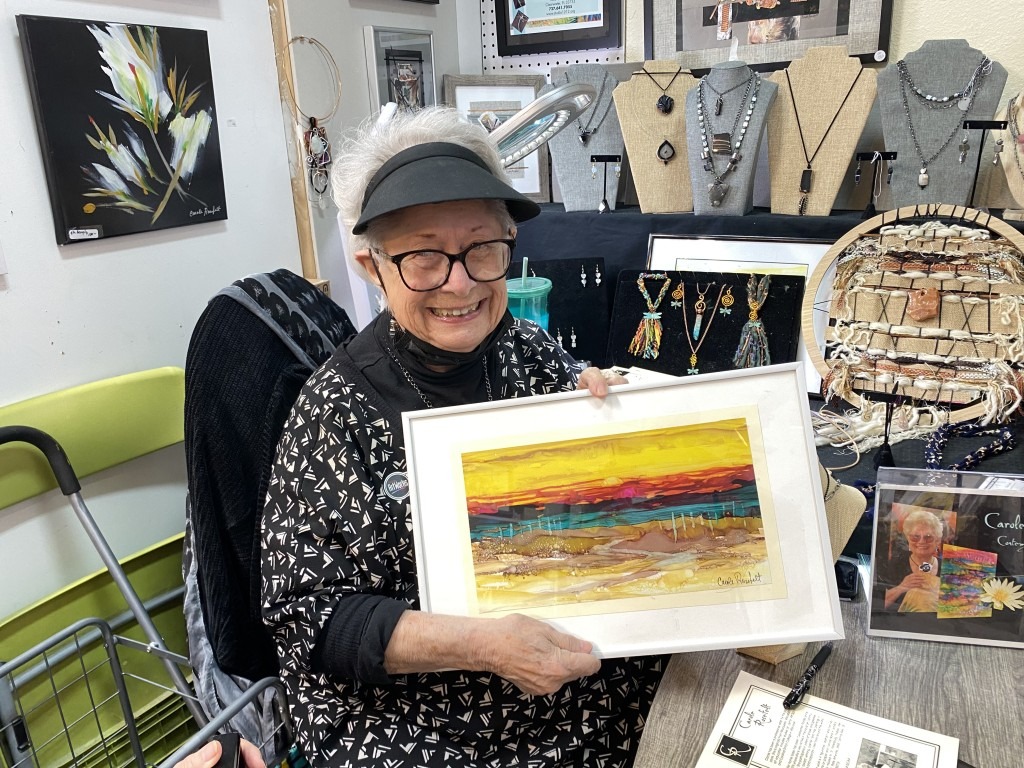 Carole still has a compulsion to be creative, even as she loses her eyesight. These days her joy is in socializing with fellow artists and sharing her ideas with others.