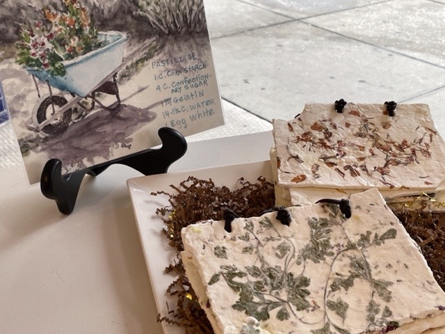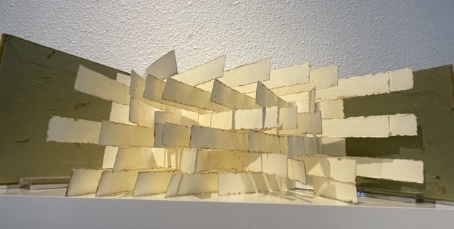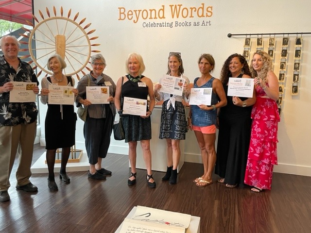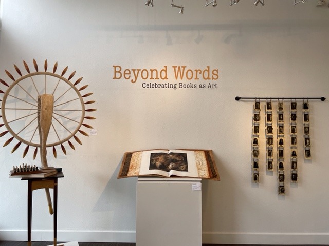 I was not prepared to see the diverse variety and the indescribable beauty of “books” at the Beyond Words: Celebrating Books as Art exhibit. Books were made out of paper, recycled and handmade paper, museum board, metal, clay, leather, fabric, glass, wood, edible flowers and herbs embedded in pastillage dough, found objects – and even, books.