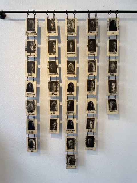 This was a most intriguing book, a stark black and white assemblage on the wall. Twenty-eight metal “cards” with photos, resembling mug shots of women, with a stamped word phrase. Fair and Hashagen are best friends who’ve never done an art collaboration. They asked women, mothers, sisters, friends, about the secrets they never told anyone.