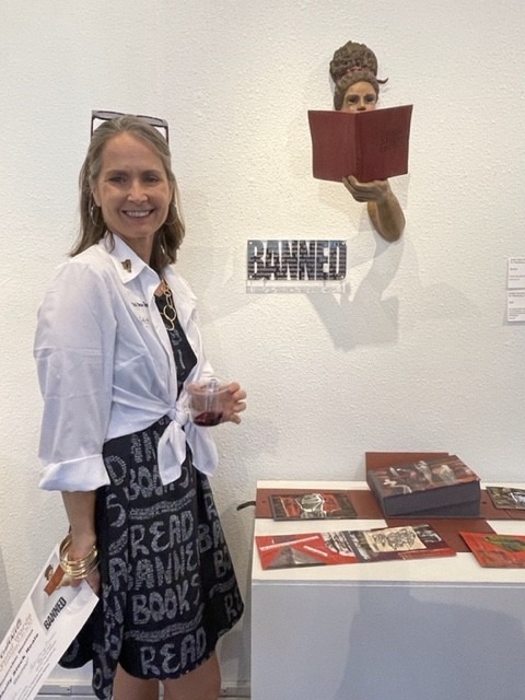The content is funny, happy, serious, sad, thought-provoking. The entire gamut of emotions (after all, books cover every subject matter) and I was close to tears after viewing some of them. Was I a little embarrassed? Yes, but that’s what happens when true communication takes place between art and a viewer who visibly responds. So if I appeared teary-eyed at opening night, I felt a connection with the work – just couldn’t talk about it!